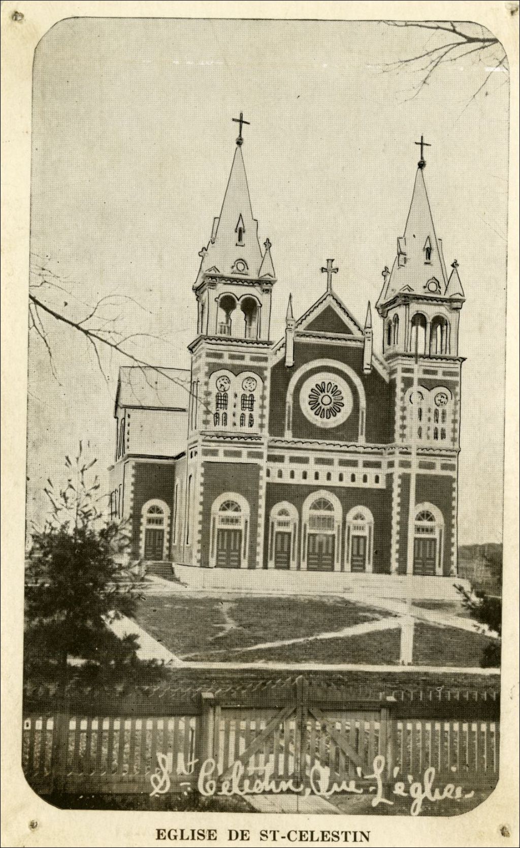 Église de Saint-Célestin du comté Nicolet, [1910], Archives nationales à Montréal, Collection Félix Barrière, (06M,P748,S1,P1744), Librairie de "L'union".