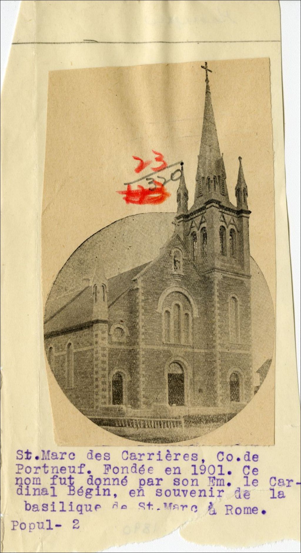 Église de Saint-Marc-des-Carrières, [1910], Archives nationales à Montréal, Collection Félix Barrière, (06M,P748,S1,P1890), Barrière, Félix.