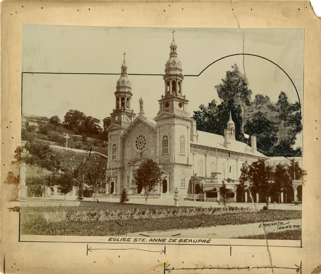 Église de Sainte-Anne-de-Beaupré, [1920], Archives nationales à Montréal, Collection Félix Barrière, (06M,P748,S1,P1977), A. Morissette.