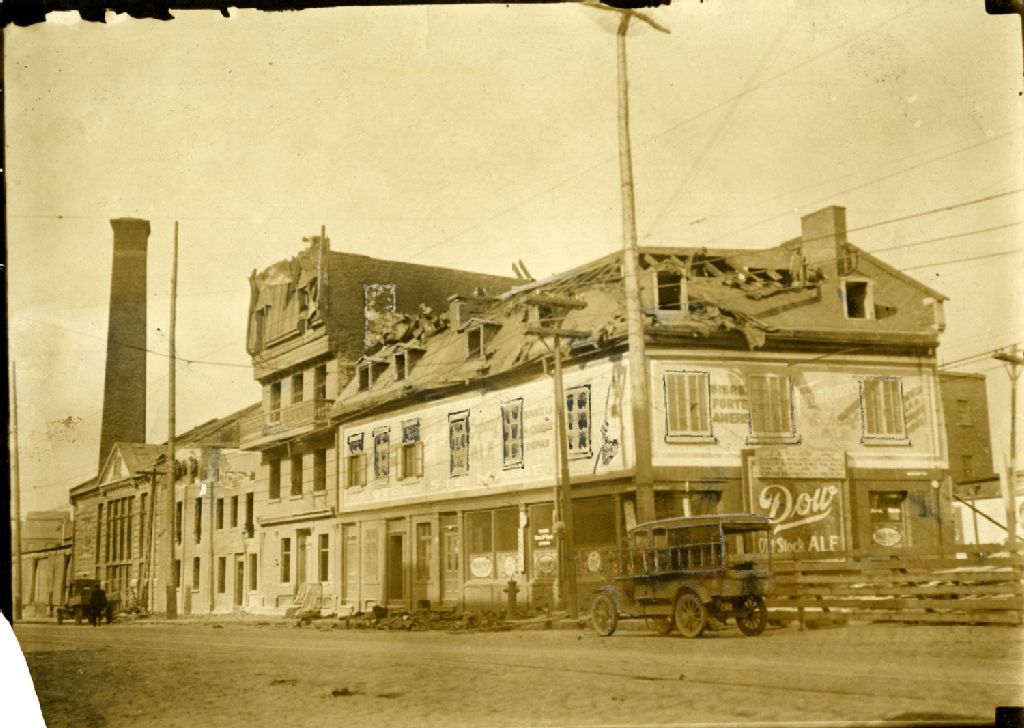 Vieilles maisons, intersection des rues Graig et Notre-Dame, en voie de démolition pour faire place au pilier d'ancrage du pont Jacques-Cartier