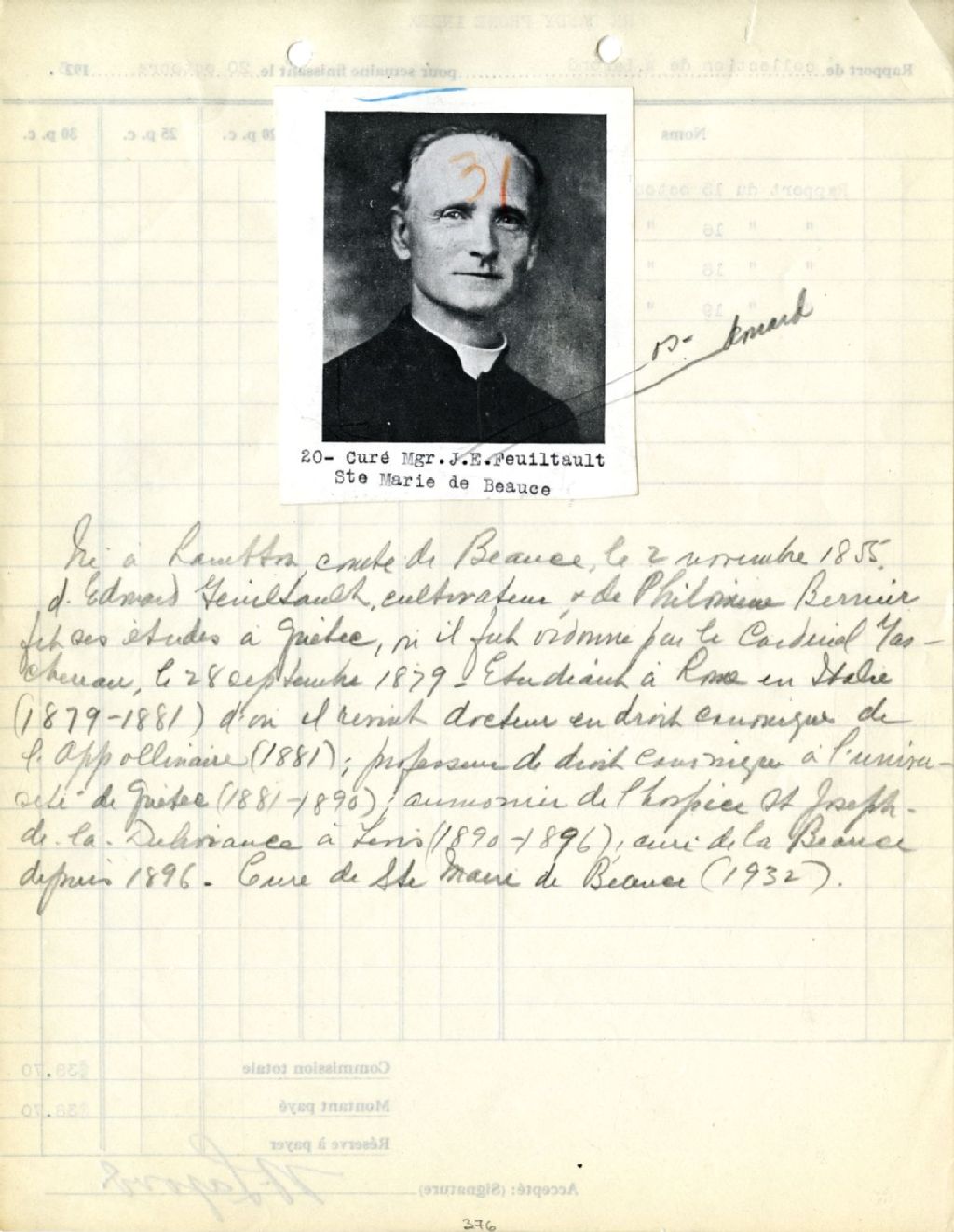 Joseph-Édouard Feuiltault, curé de Sainte-Marie-de-Beauce