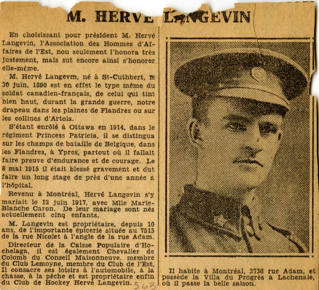 Hervé Langevin, président de l'Association des Hommes d'Affaires de l'Est, [Vers 1920], Archives nationales à Montréal, Collection Félix Barrière, (06M,P748,S1,P563), Barrière, Félix.
