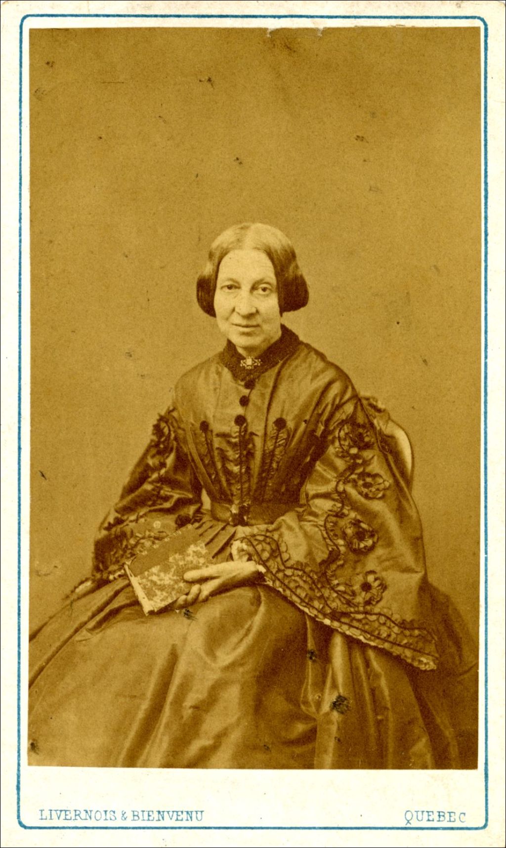 Mme. Norbert Morin St. Hyacinthe (née Adèle Raymond), [Vers 1870], Archives nationales à Montréal, Fonds Famille Bourassa, (06M,P266,S3,SS1,P22), Livernois & Bienvenu.