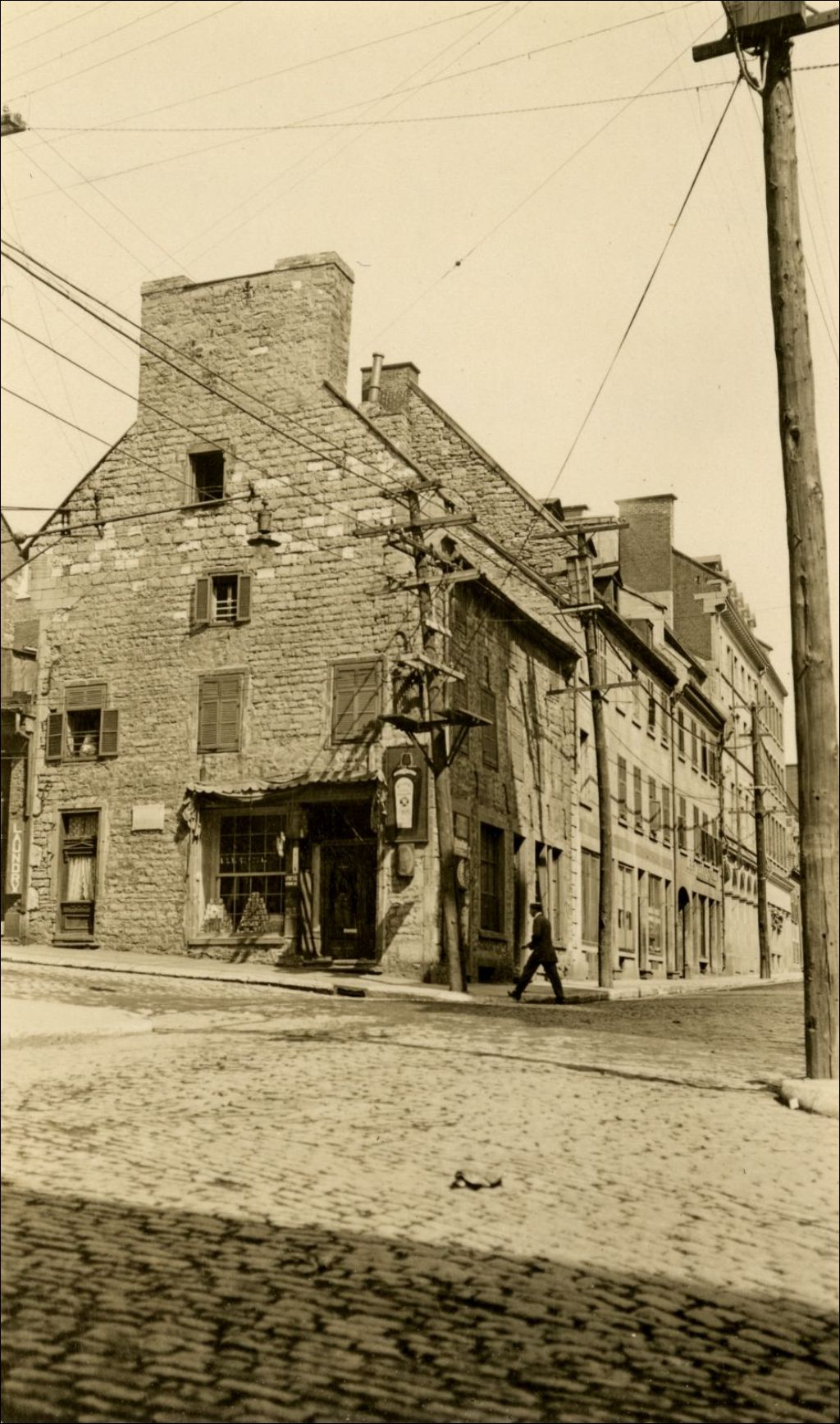 Maison Pierre du Calvet, angle nord-est de Bonsecours et St-Paul à Montréal, [Vers 1916], Archives nationales à Montréal, Fonds Famille Bourassa, (06M,P266,S3,SS2,P12), Department of Mines, Geological Survey, Photographic Division.