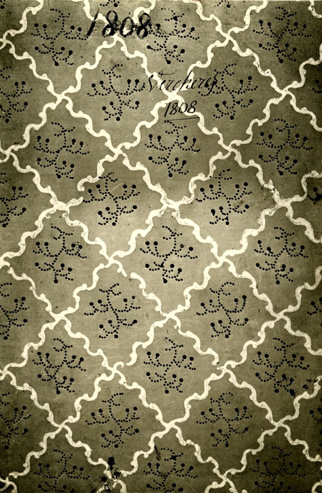 Papier peint qui servait de couverture au registre d'état civil de Verchères, en 1808