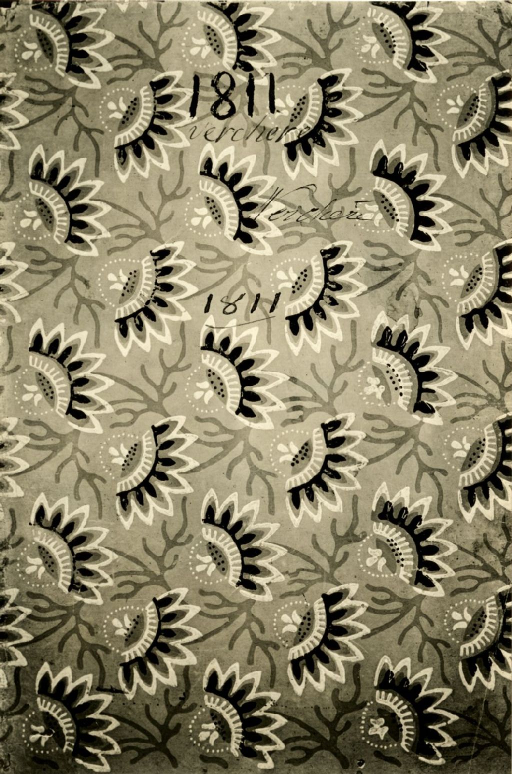 Papier peint qui servait de couverture au registre d'état civil de Verchères, en 1811