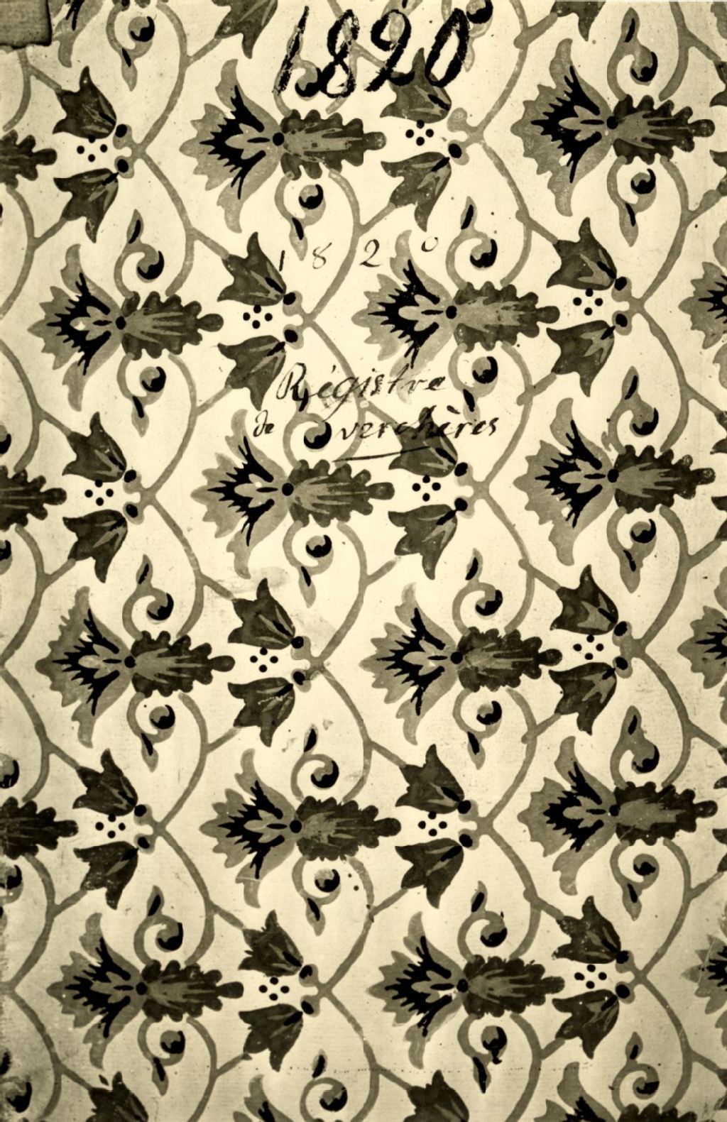 Papier peint qui servait de couverture au registre de l'état civil de Verchères en 1820