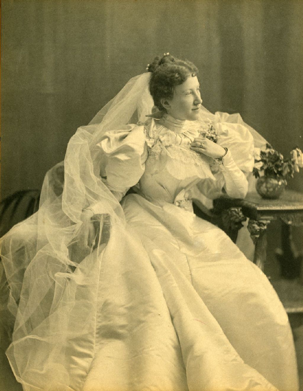 Portrait de Blanche Lacoste-Landry en robe de mariée