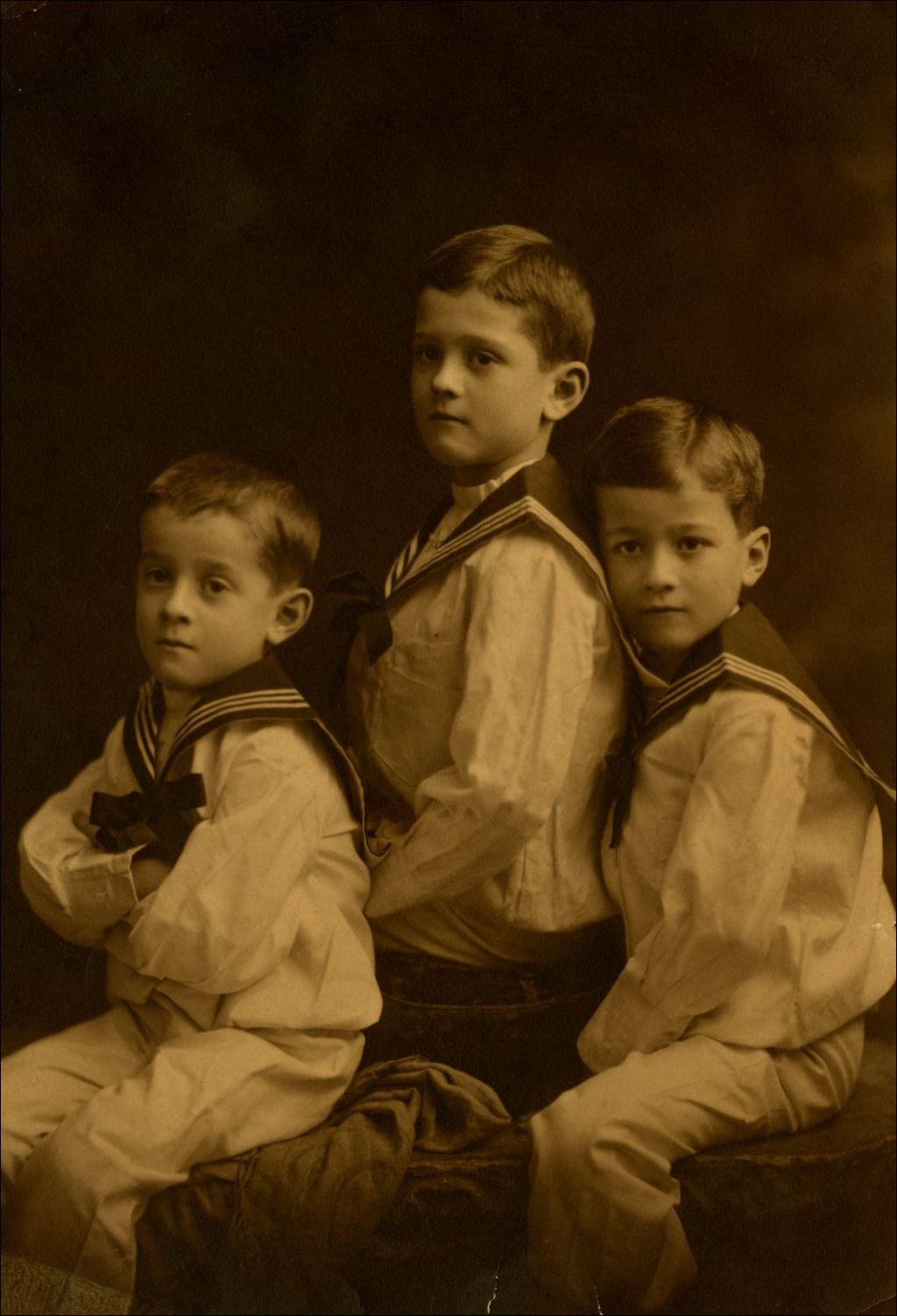 Louis, Paul et Philippe Rousseau, enfants de Bernadette Landry et d'Arthur Rousseau, en tenue de matelots