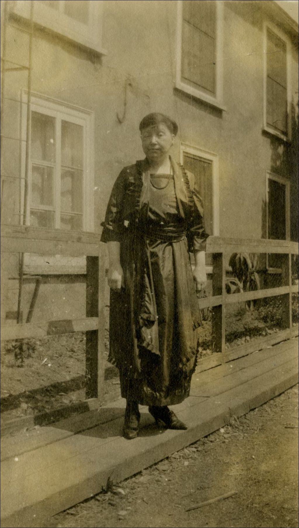 Blanche Lacoste-landry sur un trottoir de bois bordant un édifice, 1920, Archives nationales à Montréal, Fonds Famille Landry, (06M,P155,S1,SS1,D423), Photographe non identifié.