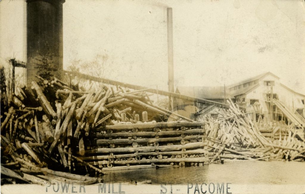 - Ce dossier montrant la scierie de Saint-Pacôme, propriété de la Power Lumber Co. Ltd, entreprise du père de Patricia Power, future épouse de Jules Landry, porte un message de Eileen adressé à Marjorie Carbtree au Seaside Hôtel de Métis-sur-Mer
