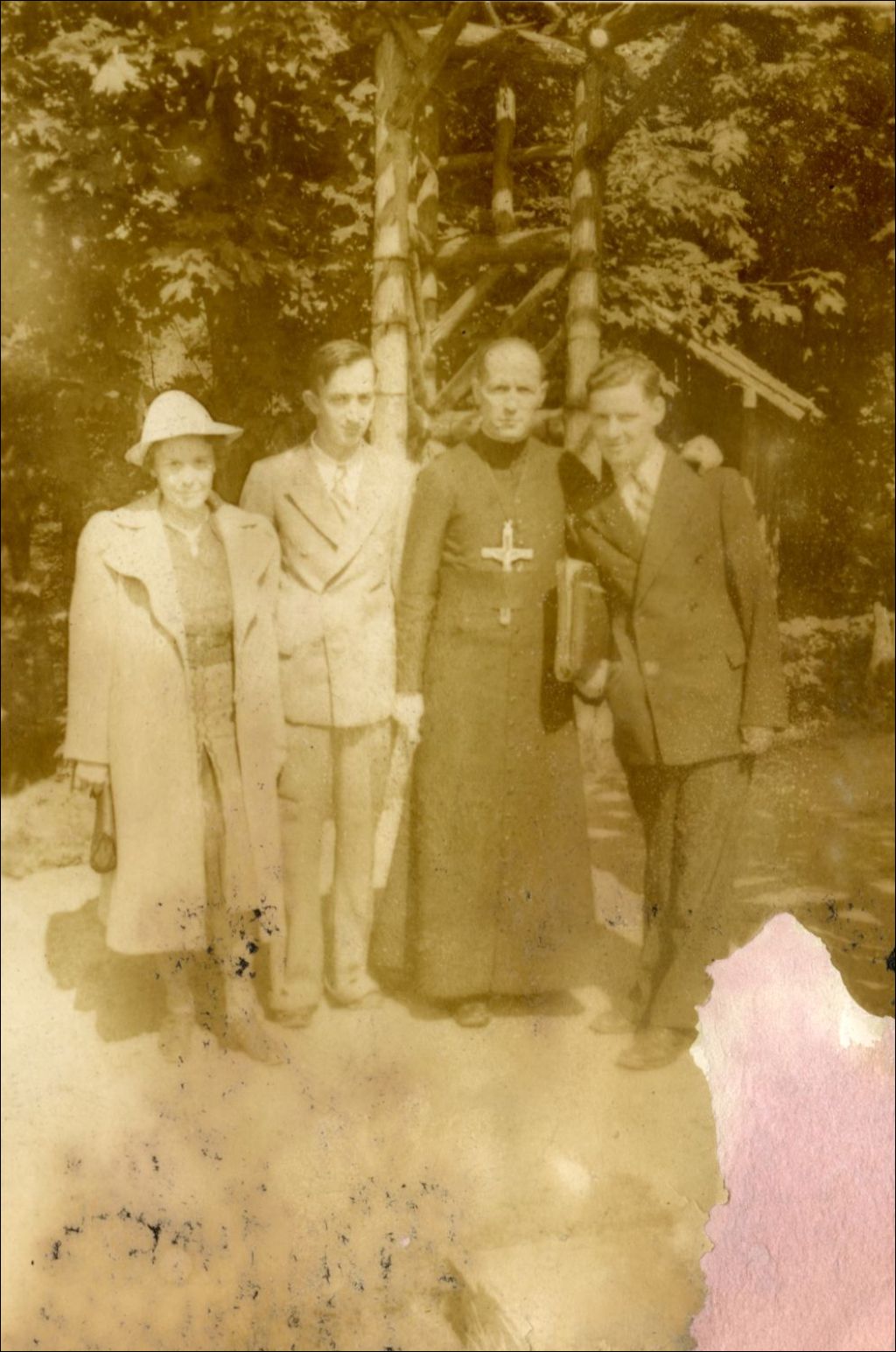 Jules Landry (à droite) en compagnie d'un prêtre et d'autres personnes non identifiées