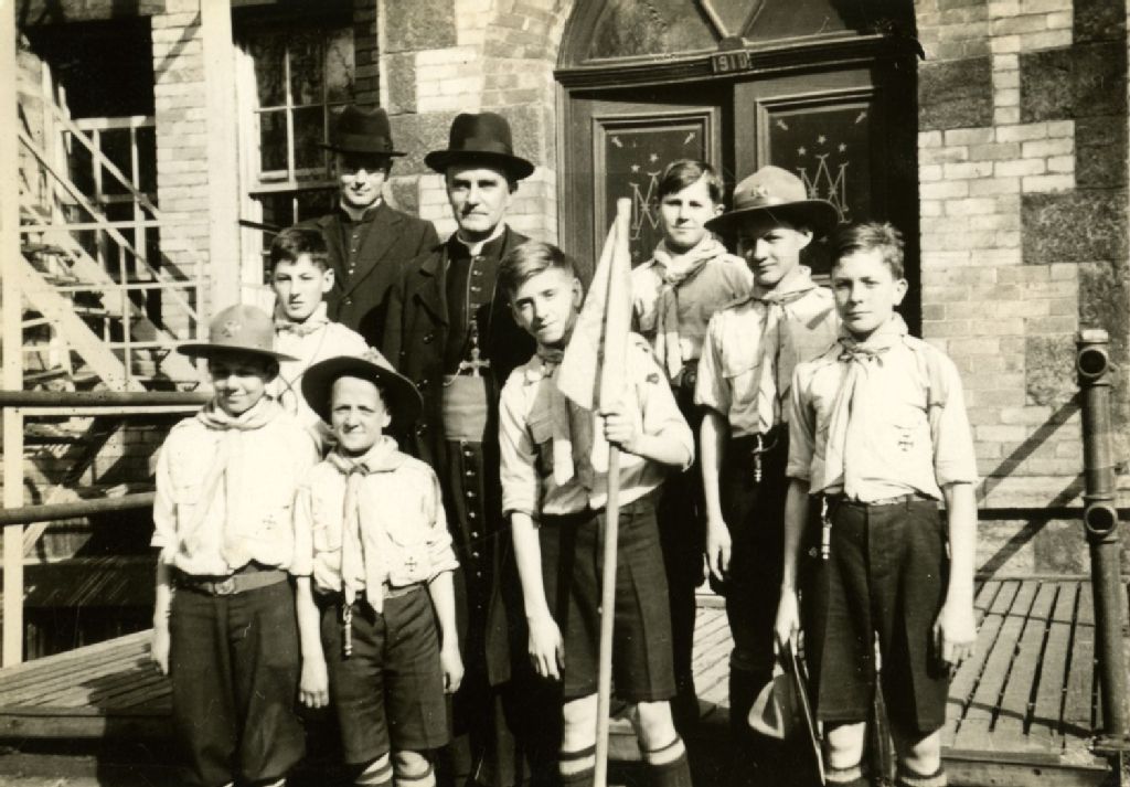 Groupe de jeunes scouts dont André Gadbois (2e à droite)