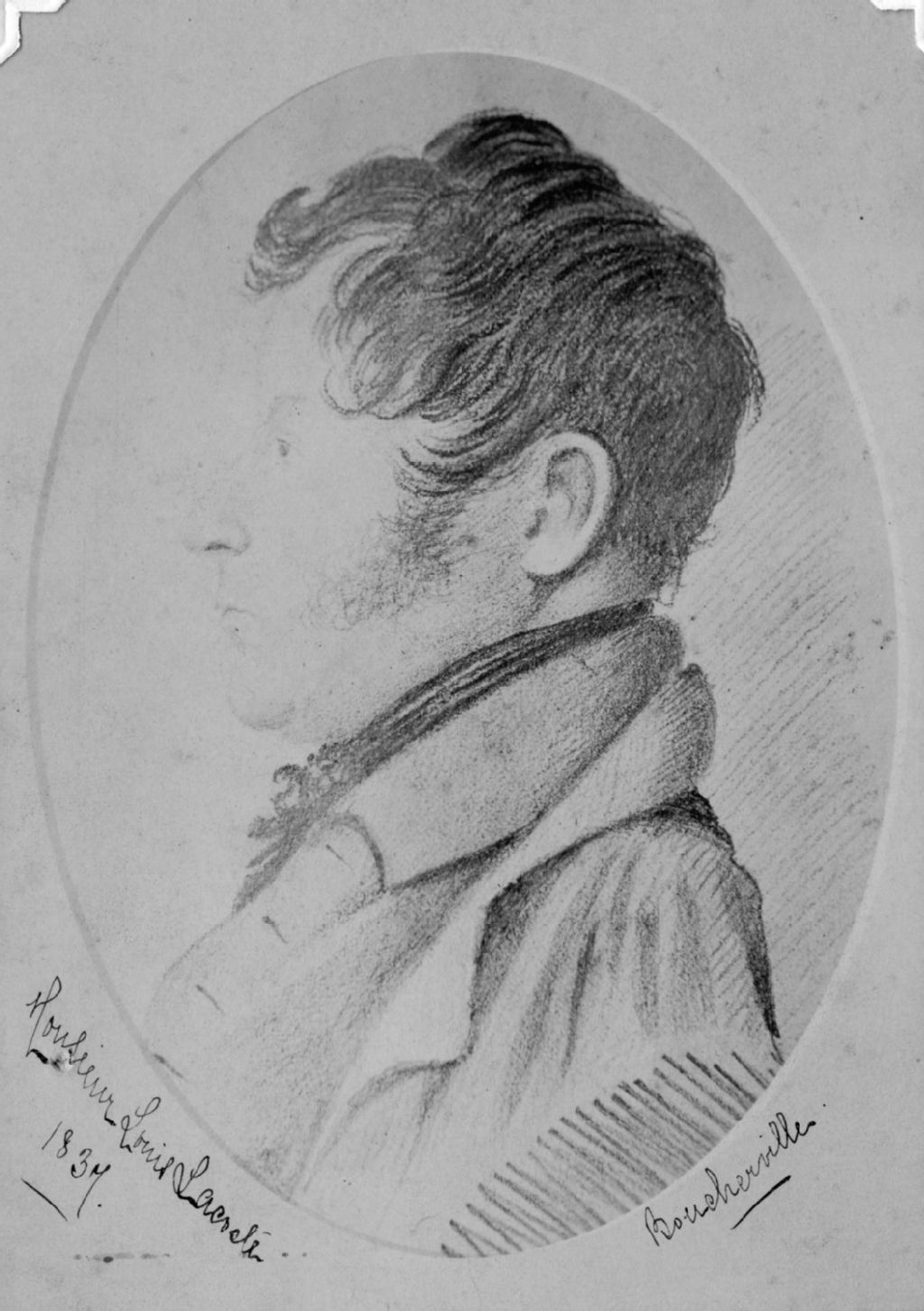 - Ce dossier comprend deux photographies d'un dessin du patriote Louis Lacoste (1798-1878) au moment où il était prisonnier en 1837. Elles sont accompagnées des portraits de sa fille, soeur Thaïs de Saint-Joseph de la Communauté de Jésus-Marie (vers 1885) et d'un de ses deux fils, Arthur Lacoste