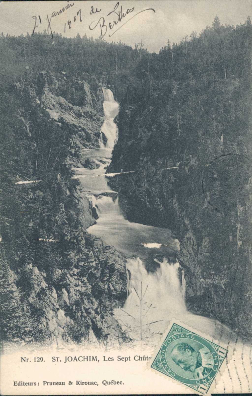 - La carte postale datée du 21 janvier 1907 est adressée à Aurette Cotnoir, 46 de Montigny Est, Montréal de la part de Bertha