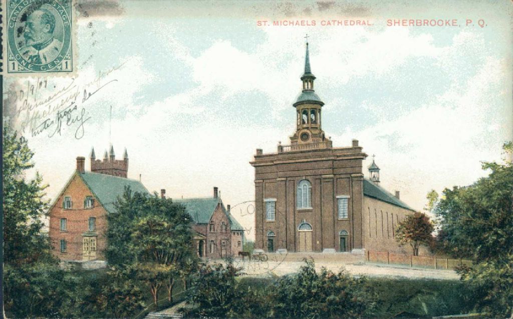 Cathédrale Saint-Michel, Sherbrooke, Québec, [Vers 1905], Archives nationales à Montréal, Fonds Laurette Cotnoir-Capponi, (06M,P186,S9,P365), Cotnoir-Capponi, Laurette.