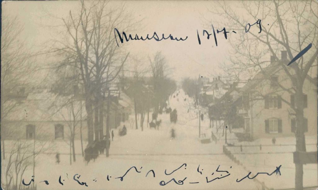 - La carte postale datée du 12 juillet 1909 est adressée à Aurette Cotnoir de Saint-Germain-de-Grantham de la part de E.E.C. De Manseau