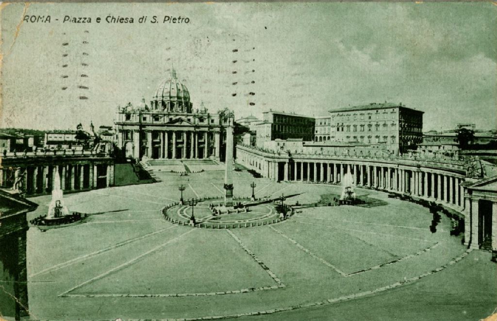 - Il s'agit de la place et de la cathédrale Saint-Pierre, à Rome, Italie. La carte postale datée du 23 novembre 1921 est adressée à Léon-Narcisse Cotnoir et de la part de Laure et Laurette