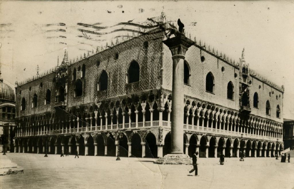 - Il s'agit du palais des Doges sur la place Saint-Marc à Venise, en Italie. La carte postale datée du 13 octobre 1922 est adressée à Laure Cotnoir de la part de Renzo Forti
