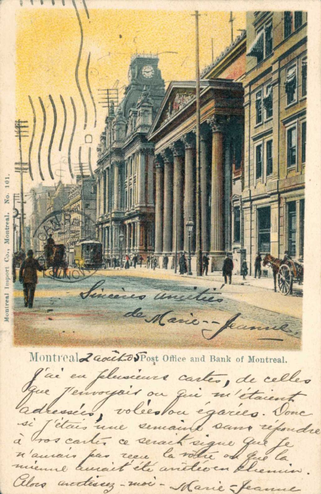- La carte postale datée du 2 août 1905 est adressée à Aurette Cotnoir de Manseau de la part de Marie-Jeanne de Montréal
