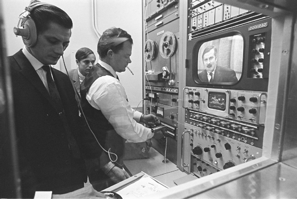 - Conférence de presse de Jean-Jacques Bertrand et Jean-Guy Cardinal et remise d'une plaque "Mettez-y du plaisant" au ministre du Tourisme