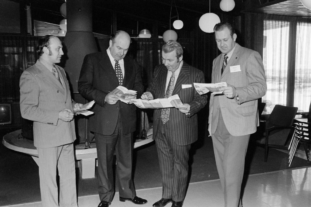 Réunion avec le ministre des Affaires municipales, Victor Goldbloom à l'institut Desjardins à Lévis, 1973-03-08, Archives nationales à Québec, Fonds Ministère des Communications, (03Q,E10,S44,SS1,D73-101), Photographe non identifié.