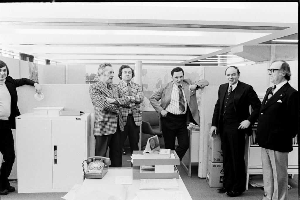 - Gilles Loiselle dans son bureau, Pierre-Paul Lafortune, directeur de la presse électronique au ministère des Communications et séance d'information sur vidéo aux nouveaux employés du ministère des Communications