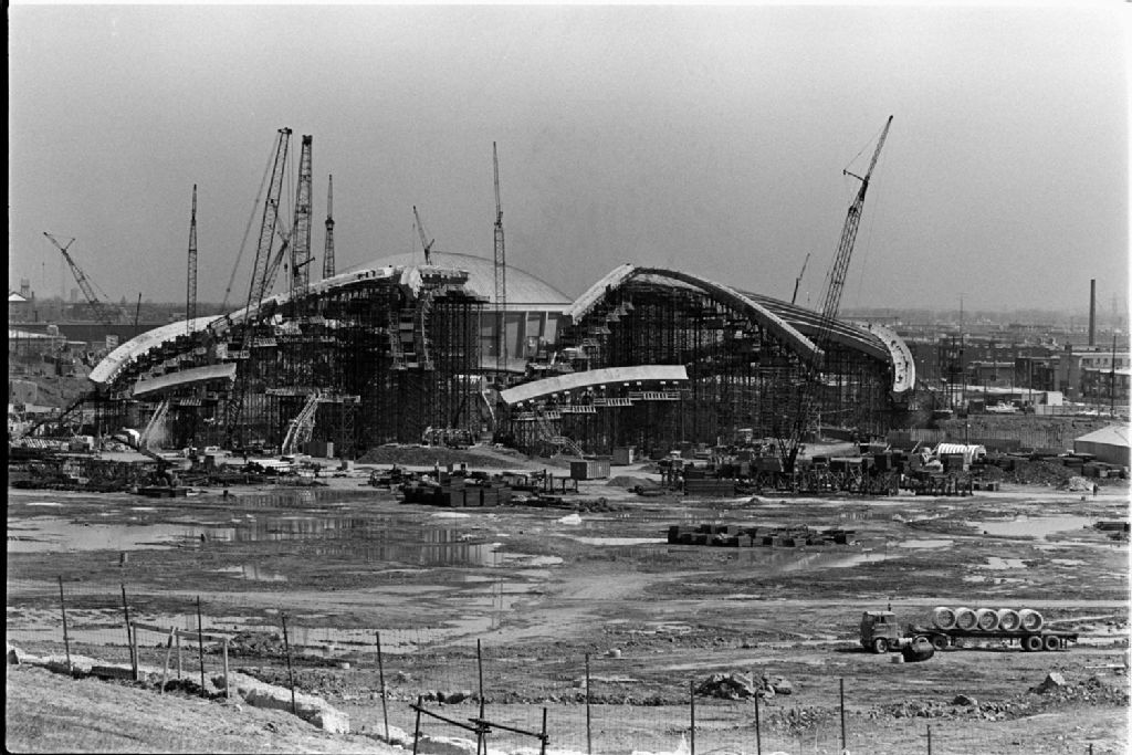 Tour de Radio-Canada à Montréal, usine de montage General Motors et travaux pour les Jeux Olympiques, 1974-05, Archives nationales à Québec, Fonds Ministère des Communications, (03Q,E10,S44,SS1,D74-189), Daniel Lessard.