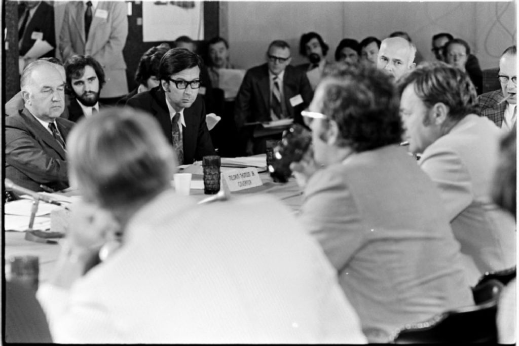Conférence dans le Vermont avec Robert Bourassa, 1974-06, Archives nationales à Québec, Fonds Ministère des Communications, (03Q,E10,S44,SS1,D74-265), Daniel Lessard.
