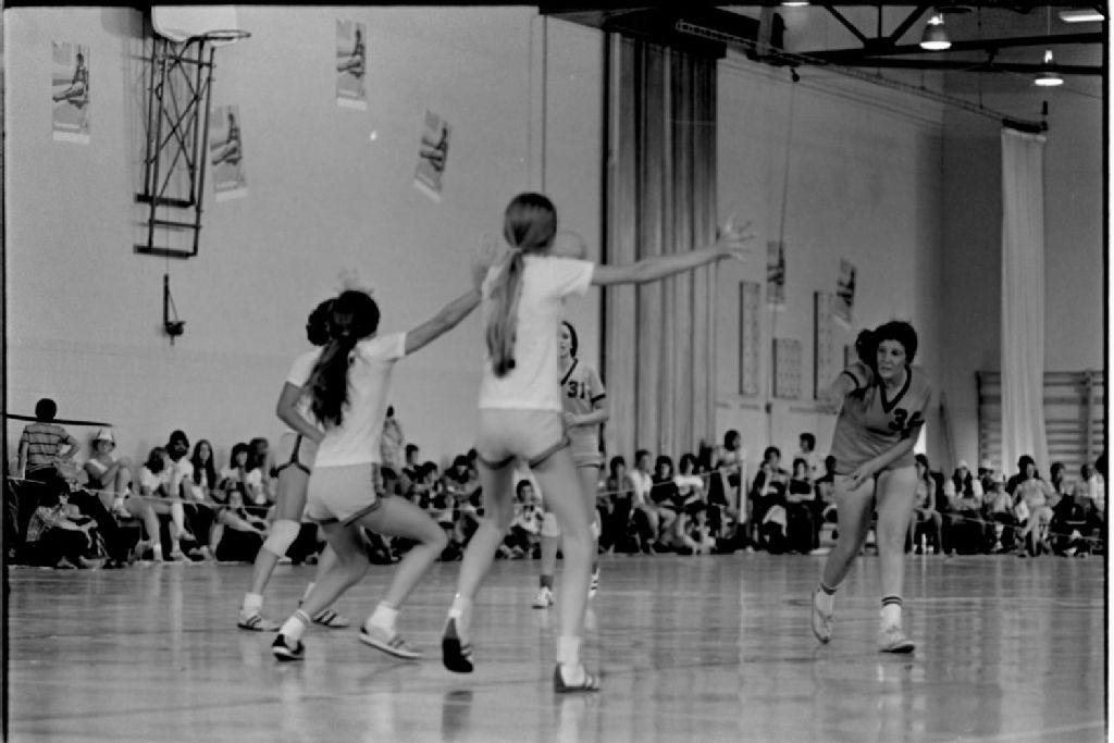 Compétitions de handball et de cyclisme lors des Jeux du Québec à Salaberry de Valleyfield, 1974-08, Archives nationales à Québec, Fonds Ministère des Communications, (03Q,E10,S44,SS1,D74-434), Photographe non identifié.