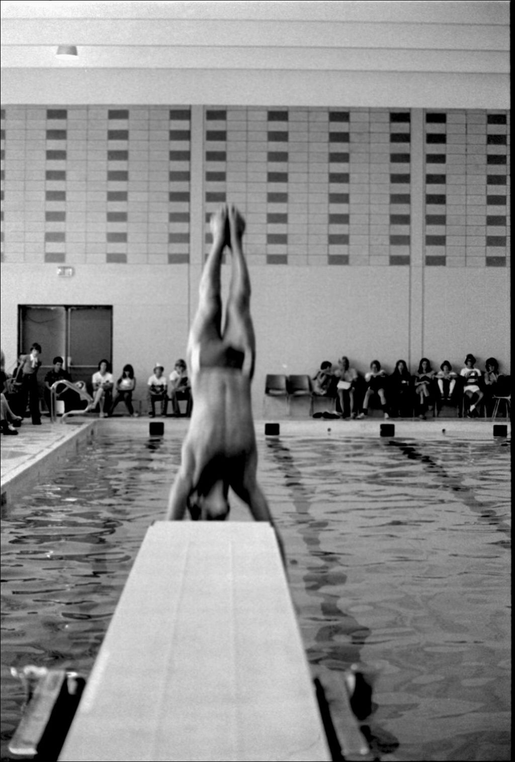 Compétition de plongeon lors des Jeux du Québec à Salaberry de Valleyfield, 1974-08, Archives nationales à Québec, Fonds Ministère des Communications, (03Q,E10,S44,SS1,D74-435), Photographe non identifié.