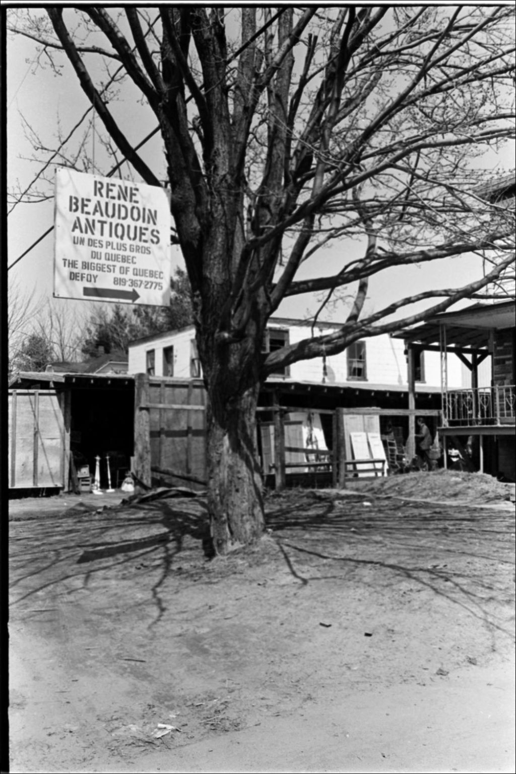 Magasin d'antiquités René Beaudoin et rivière Bécancour, 1975-04-24, Archives nationales à Québec, Fonds Ministère des Communications, (03Q,E10,S44,SS1,D75-182), René Baillargeon.
