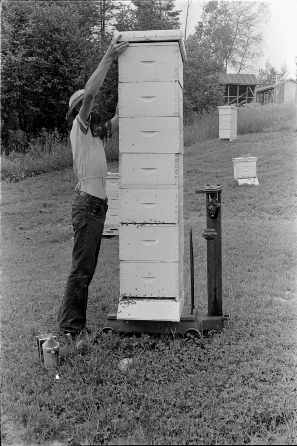 Ruchers expérimentaux du gouvernement à Deschambault et camping à Stoneham, 1975-07-10, Archives nationales à Québec, Fonds Ministère des Communications, (03Q,E10,S44,SS1,D75-391), François Lessard.