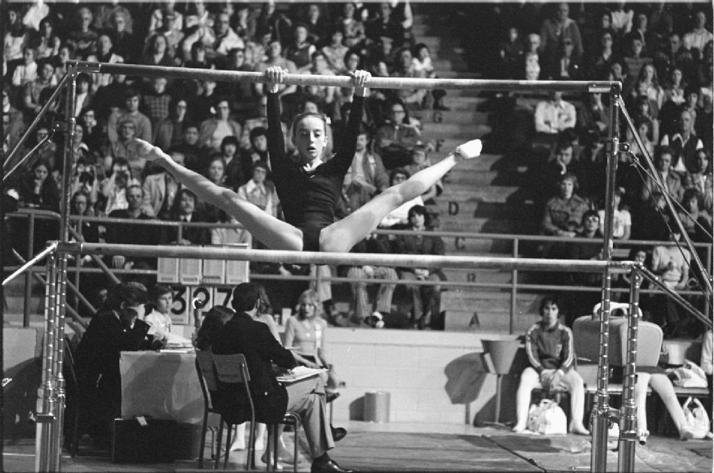 Compétition et médaillés de gymnastique lors des Jeux d'hiver du Canada à Lethbridge en Alberta, 1975-02, Archives nationales à Québec, Fonds Ministère des Communications, (03Q,E10,S44,SS1,D75-67), Daniel Lessard.