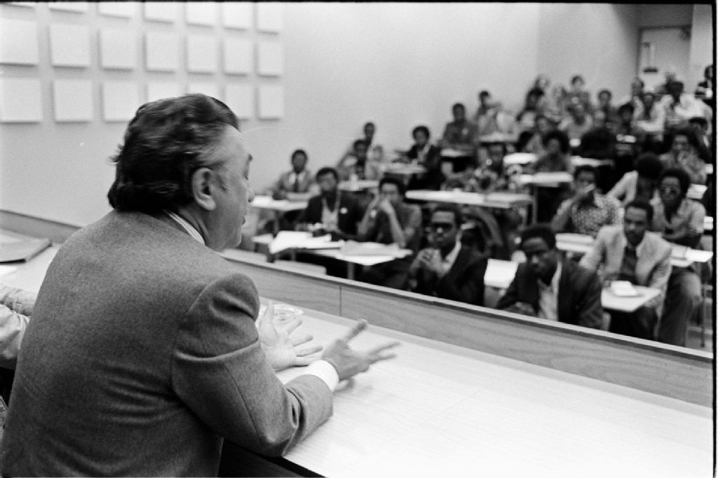 Conférence de presse du ministre des Affaires intergouvernementales, François Cloutier, pour des étudiants africains en journalisme