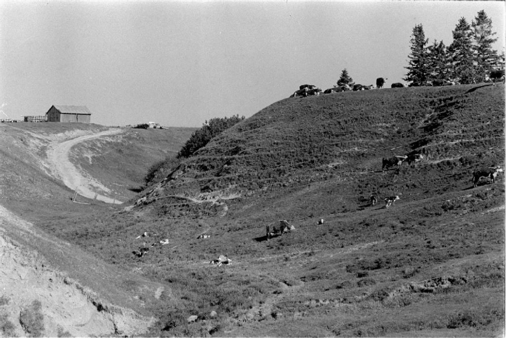 Pointe Chambord, lac Bouchetten l'Ermitage, Saint-François de Sales et agriculteur au travail, 1976-06-09, Archives nationales à Québec, Fonds Ministère des Communications, (03Q,E10,S44,SS1,D76-232), R. L.