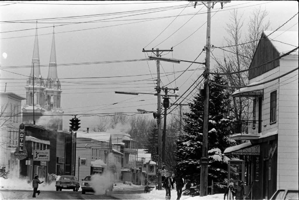 Rue Dorchester à Québec en hiver et boulevard Sacré-Coeur à Saint-Félicien près du lac Saint-Jean, 1976-01, Archives nationales à Québec, Fonds Ministère des Communications, (03Q,E10,S44,SS1,D76-7), Daniel Lessard.