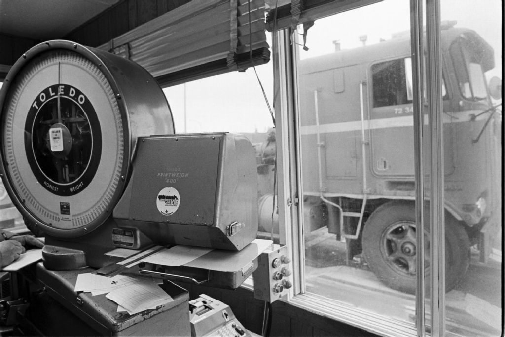 Ministère des transports ; pesée des camions à la balance de Saint-Romuald