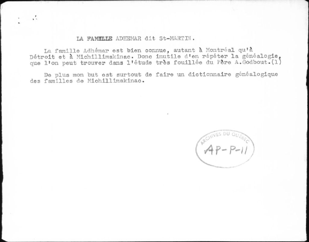 - Généalogie de la famille Adhémar dit Saint-Martin