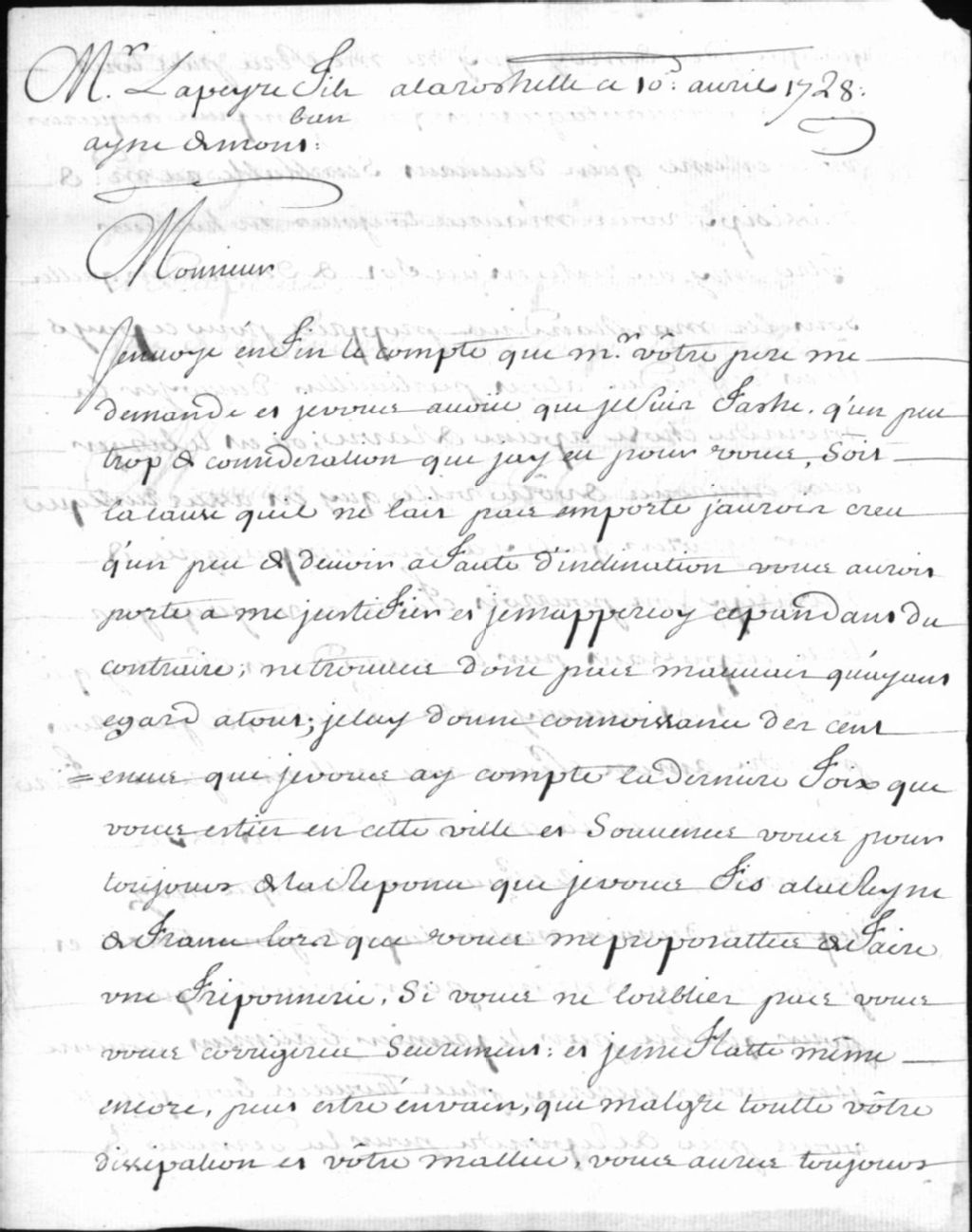 - Lettre de Jean Taché à Lapeyre, fils, sur ses comptes