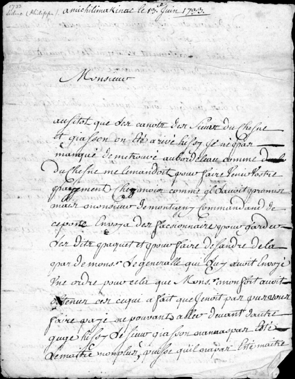 - Lettre de Philippe Leduc concernant le commerce du castor à Michilimakinac