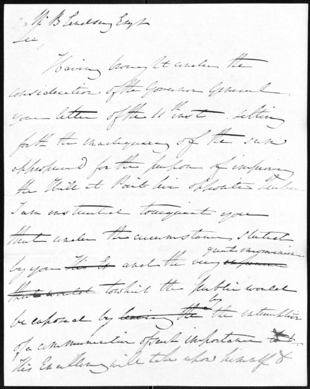 - Lettre au sujet de la voirie à Pointe-Lévis et nomination à titre de greffier de W. B. Lindsay