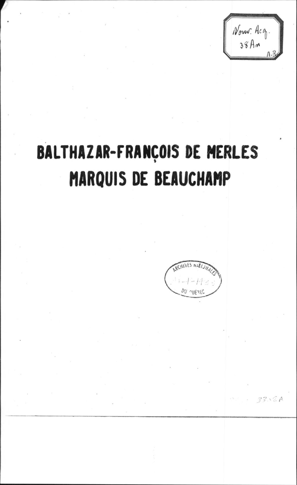 Manuscrit de François-Balthazar de Merles, marquis de Beauchamp