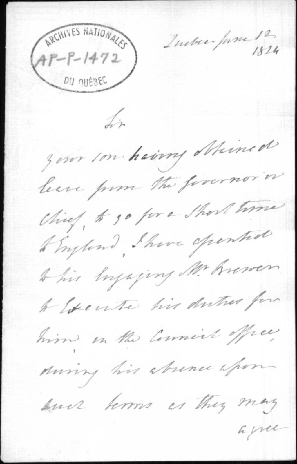- Ce dossier contient une lettre de l'abbé Charles Chiniquy portant sur la traduction d'un ouvrage par Montizambert, critiques, 1847. Lettre de J. Morton concernant la nomination de Brewer au bureau du Conseil (Council Office) pour remplacer son fils (Montizambert) pendant son séjour en Angleterre, 1824. Copie manuscrite de l'inventaire des biens de feue Mme Montizambert (Lucy Irwin Bowen) 1862