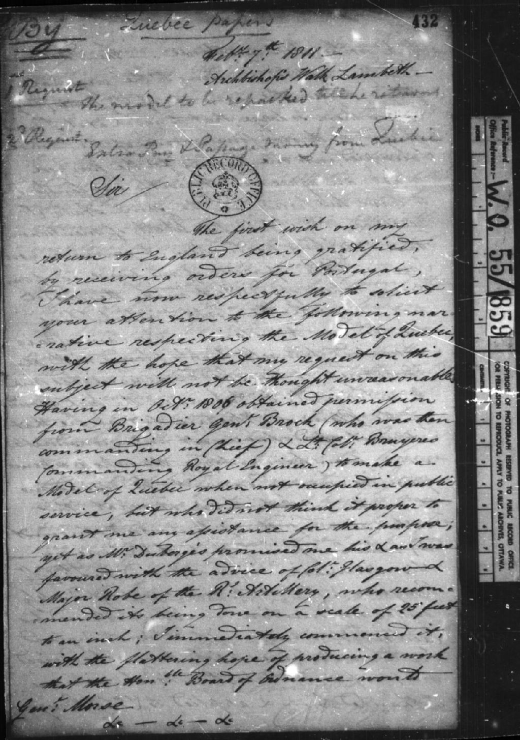 - Ce dossier contient le photostat d'une lettre de John By au général Morse concernant la maquette Duberger (plan-relief de Québec)