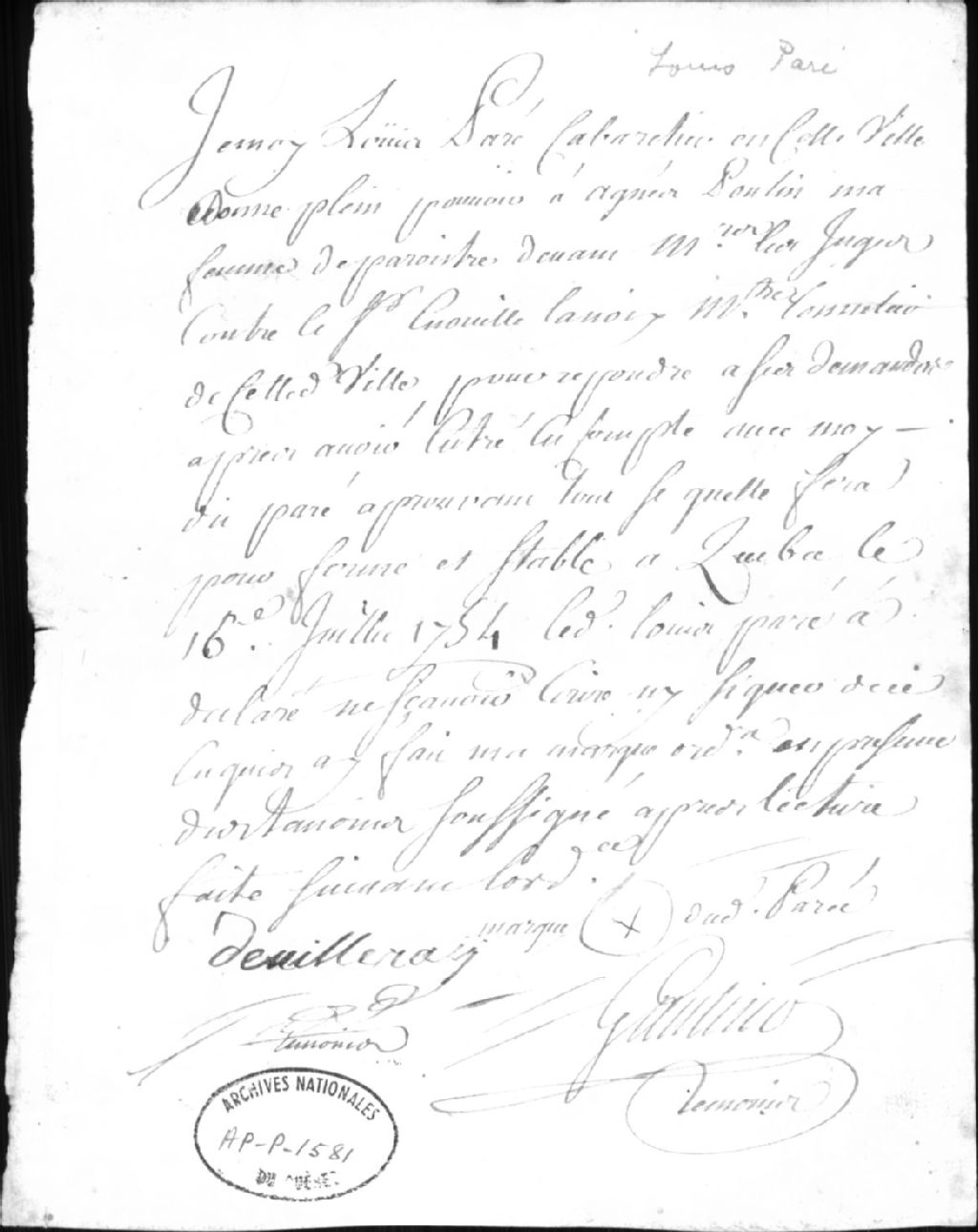 Ce dossier contient le photostat d'une licence accordée par l'intendant Hocquart à Louis Paré pour vendre de l'alcool, 29 janv. 1735. Photostat d'une procuration de Louis Paré à sa femme Agnès Poulin pour paraître devant les juges contre le sieur Enouille Lanoix, 16 juil. 1754