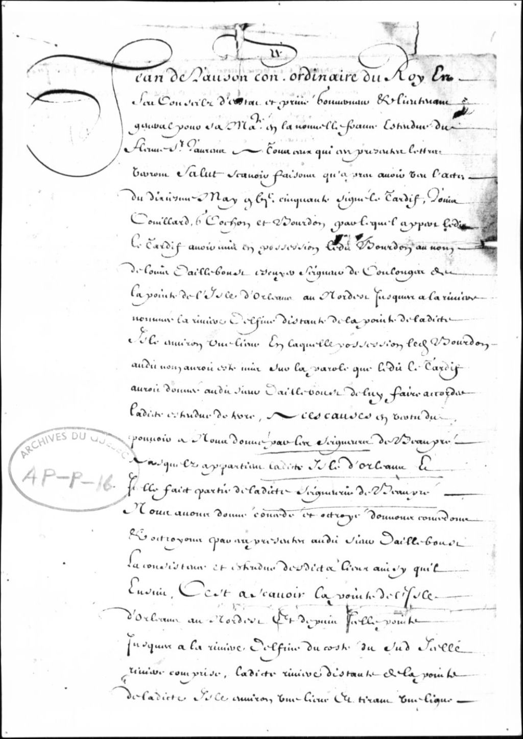 - Ce dossier est composé de photostats des lettres patentes nommant Louis D'Ailleboust (1612-1660), gouverneur de la Nouvelle-France en 1648 et d'un acte de concession de terre dans l'arrière-fief d'Argentenay en 1652. Se trouvent également des photocopies des trois concessions accordées par Jean de Lauzon à D'Ailleboust de 1649 à 1652