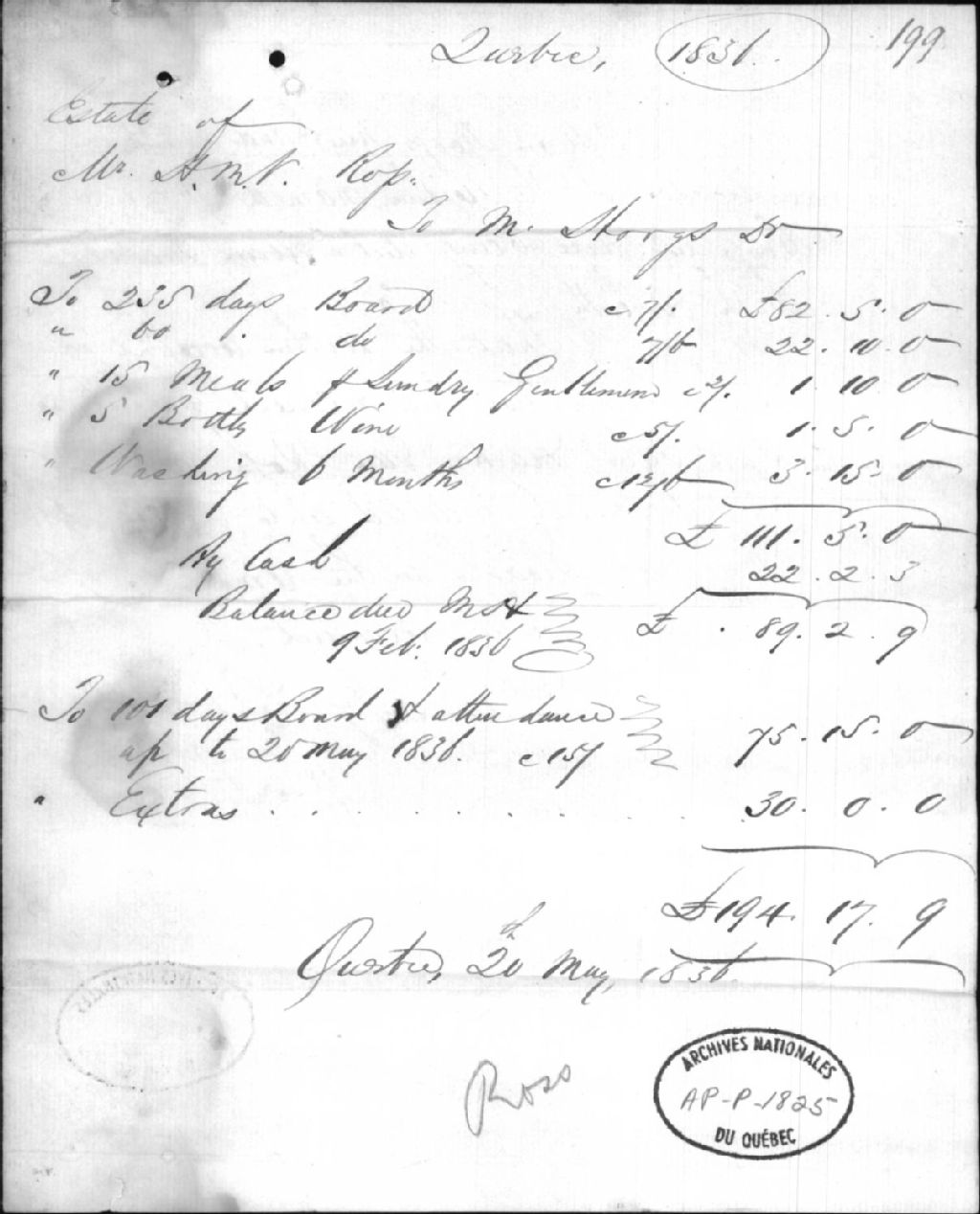 Compte de la succession de Henry Mackay Van Ross à William Hoogs