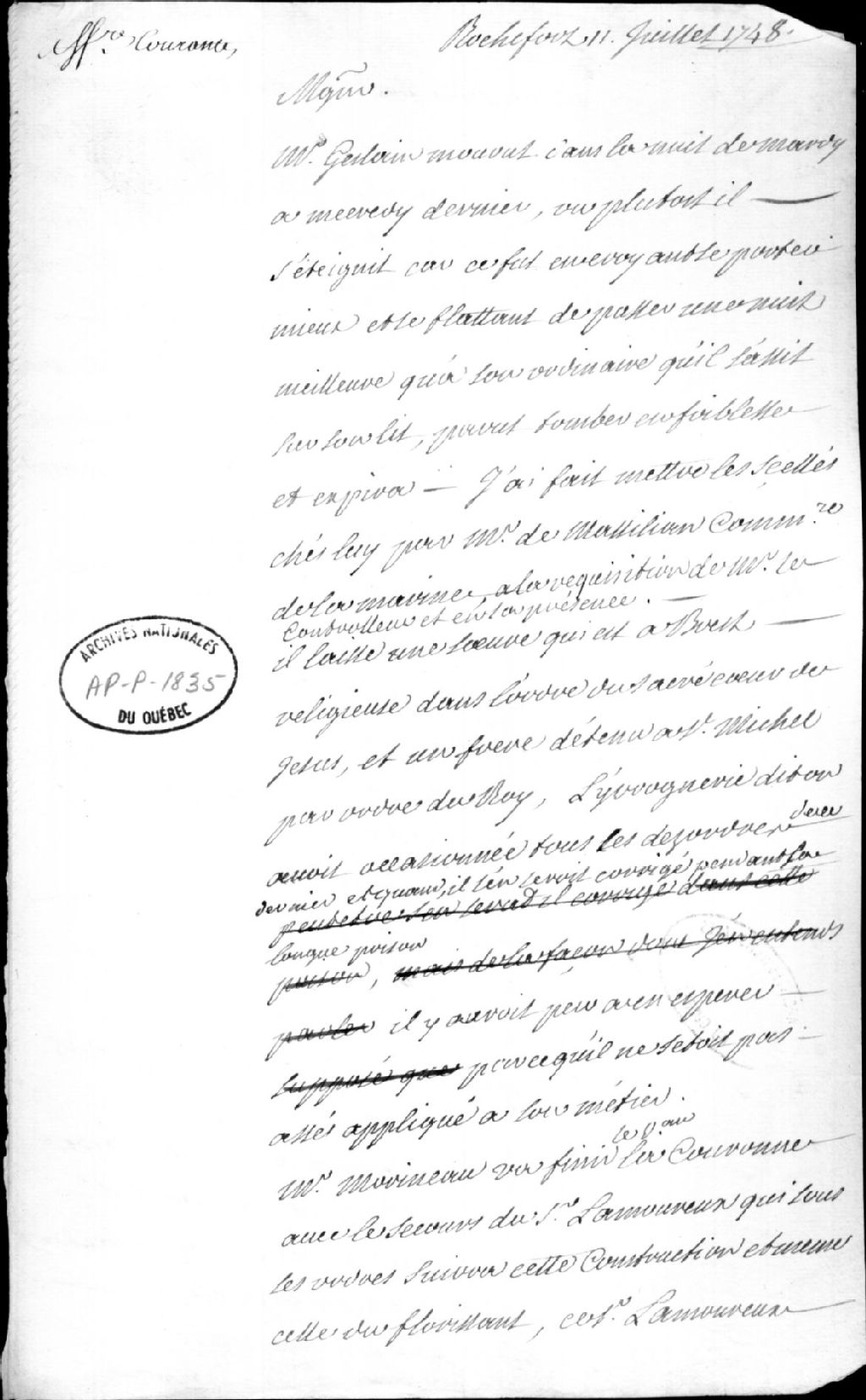 - Ce dossier est constitué de copies manuscrites de brouillons de lettres adressées aux ministres Rouillé et Maurepas concernant les affaires courantes, les colonies, le mouvement et le chargement des navires dans le port de Rochefort