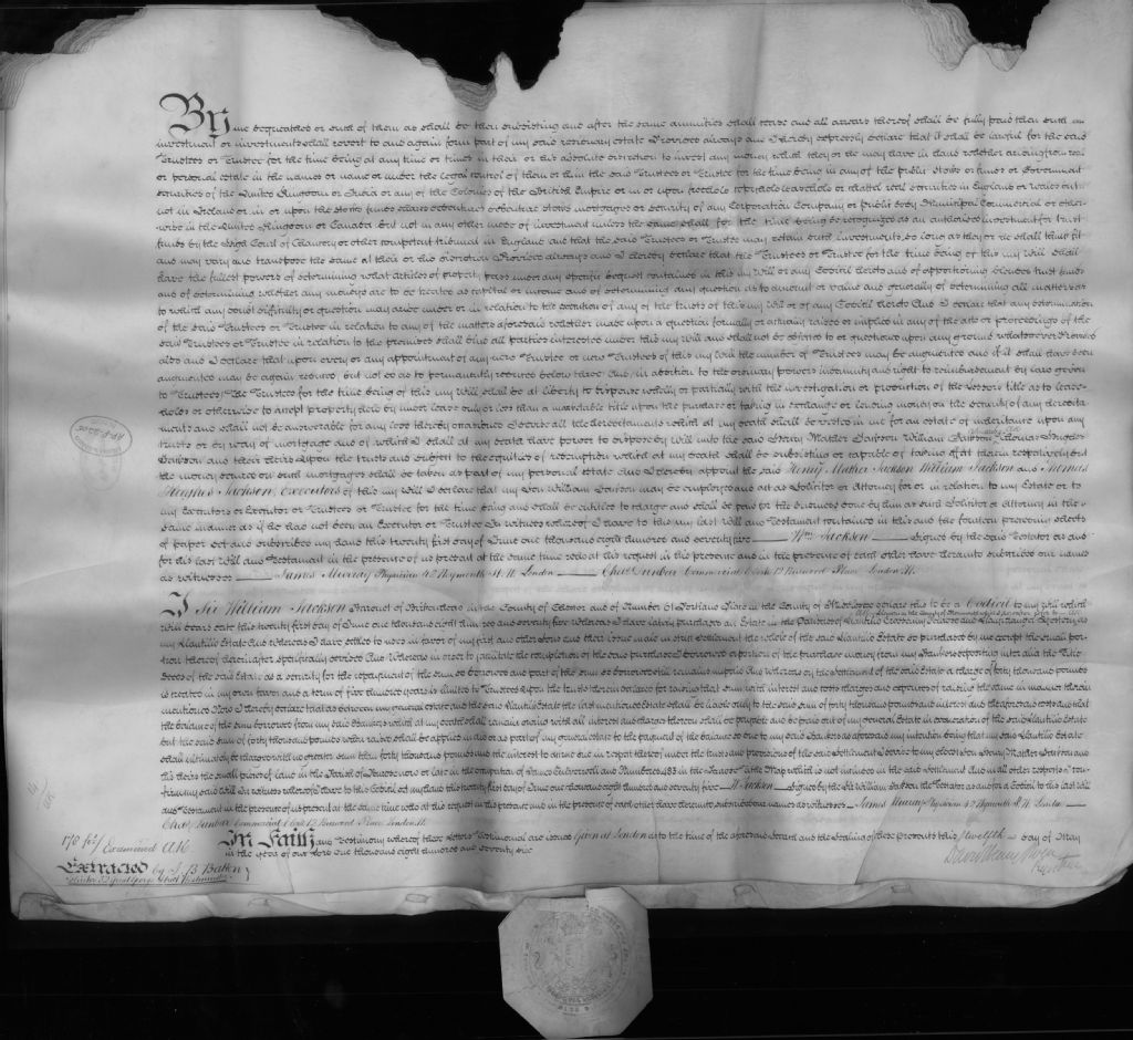 - Testament de Sir William Jackson (parchemin). Ce dossier était un exemplaire de démonstration